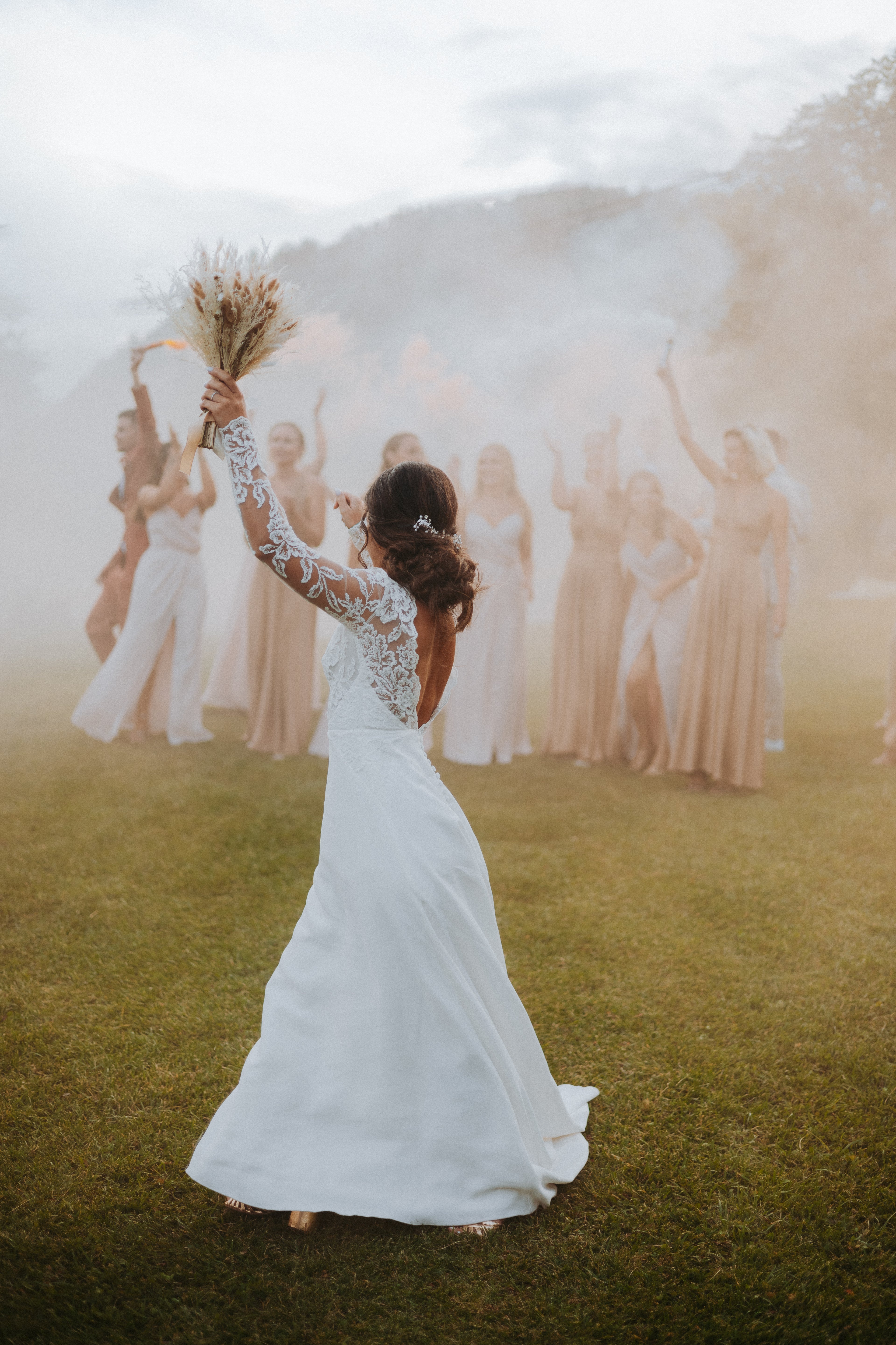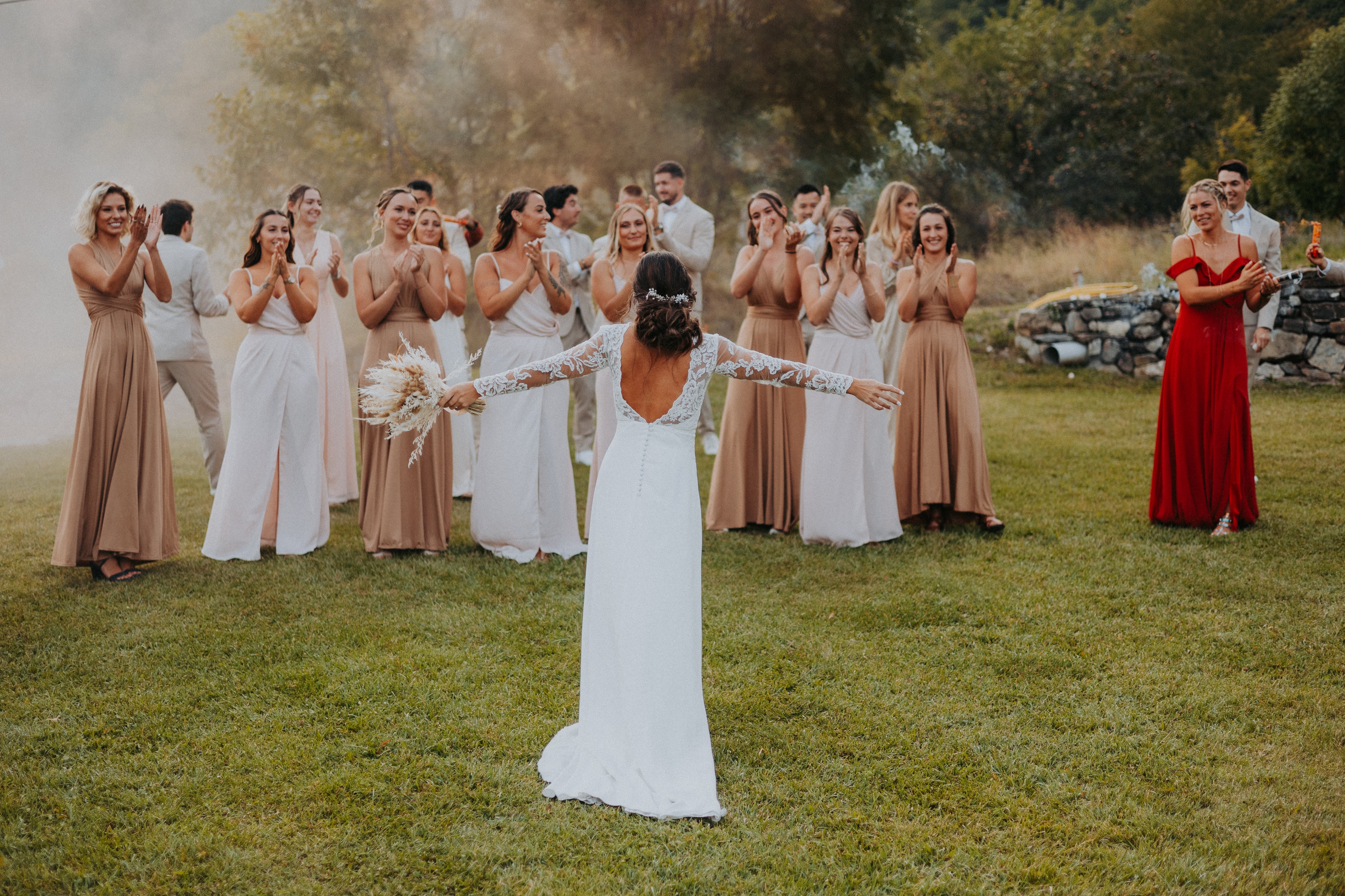 Les amies et témoins de la mariée, toutes plus belles les unes que les autres, se sont réunies pour créer cet instant magique. Bravo au photographe de l'avoir mis en scène et de l'avoir capturé en photo.